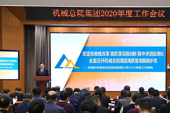 王西峰总经理代表集团领导班子作了《攻坚克难推改革 狠抓落实强创新 稳中求进促增长 全面迈开机械总院集团高质量发展新步伐》的工作报告。全面回顾了机械总院集团2019年度工作,并从国际、国内、国资委要求三个不同维度,分析了集团2020年面临的形势、受到的影响,明确了2020年发展的工作思路和重点任务。