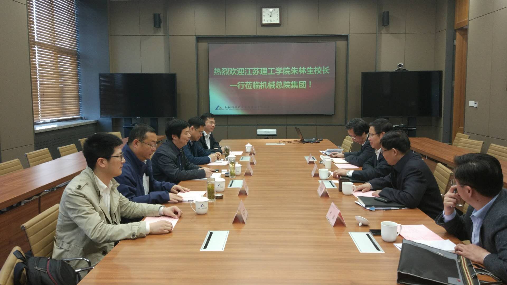 4月14日,江苏理工学院朱林生校长一行到访机械总院集团,机械总院集团党委书记、董事长、总经理王德成给予热情接待并座谈交流,机械总院集团副总经理单忠德主持会议。
