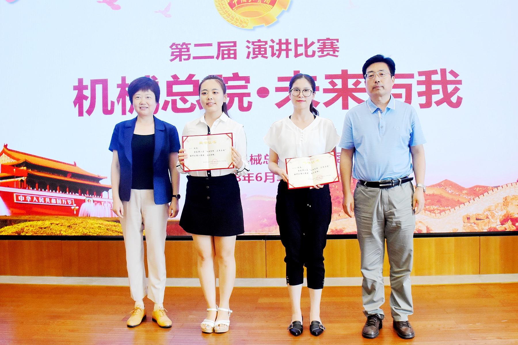 演讲比赛在《团歌》中正式开始。14位参赛选手精神饱满,紧紧围绕新时代主题,充分展现了新时代机械总院集团新青年立足岗位、开拓进取的精神面貌。最终,北自所吴睿婧获得一等奖;郑机所蒋思涵、生产力高京获得二等奖;中机认检王弓静宇、轻量化院郭彩玉、机科股份孙玉洁获得三等奖。