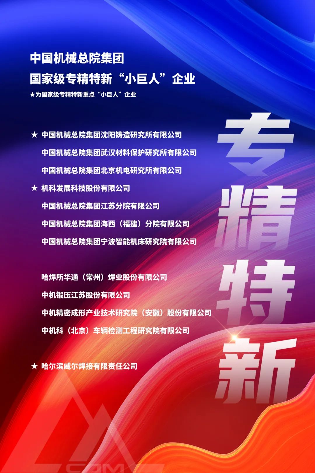 近日,工业和信息化部公示了第五批国家级专精特新“小巨人”企业名单,中国机械总院所属4家单位:中国机械总院集团江苏分院有限公司、中国机械总院集团宁波智...