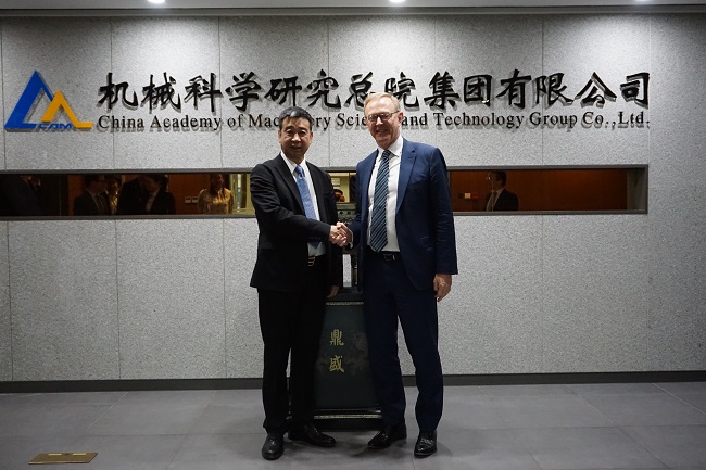 李建友副总经理对霍华德•科尔先生一行的到来表示热烈欢迎,并重点围绕集团在基础共性技术研究、标准化、检验检测、认证认可、行业服务等方面业务,以及在支撑中国装备制造业高质量发展中发挥的重要作用进行了系统介绍。霍华德•科尔对机械总院集团的热情接待表示感谢。他表示,自今年9月李建友副总经理率团访问BSI以来,机械总院集团与BSI的合作被提到新的高度,希望双方重点围绕设施管理、增材制造等方面形成全方位的务实合作,实现在标准、检测、认证等方面的共赢发展。双方还就2020年共同举办中英标准化高峰论坛等事宜进行了深入探讨。