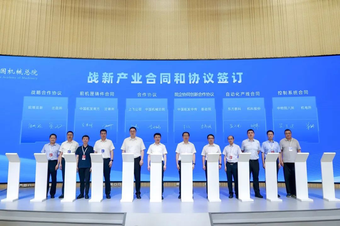 会上,中国机械总院集团及所属公司沈铸所、北自所、机电所、机科股份、基础院、海西分院、宁波机床院、云南院等单位分别与中国商飞上飞公司、皖维高新、中国航发南方、中国航发中传、东方数科、中物院八所、万向钱潮、科德数控、云南锦润、福州市晋安区政府、重庆两江新区等12家企业和地方政府签署战新产业合同及协议。