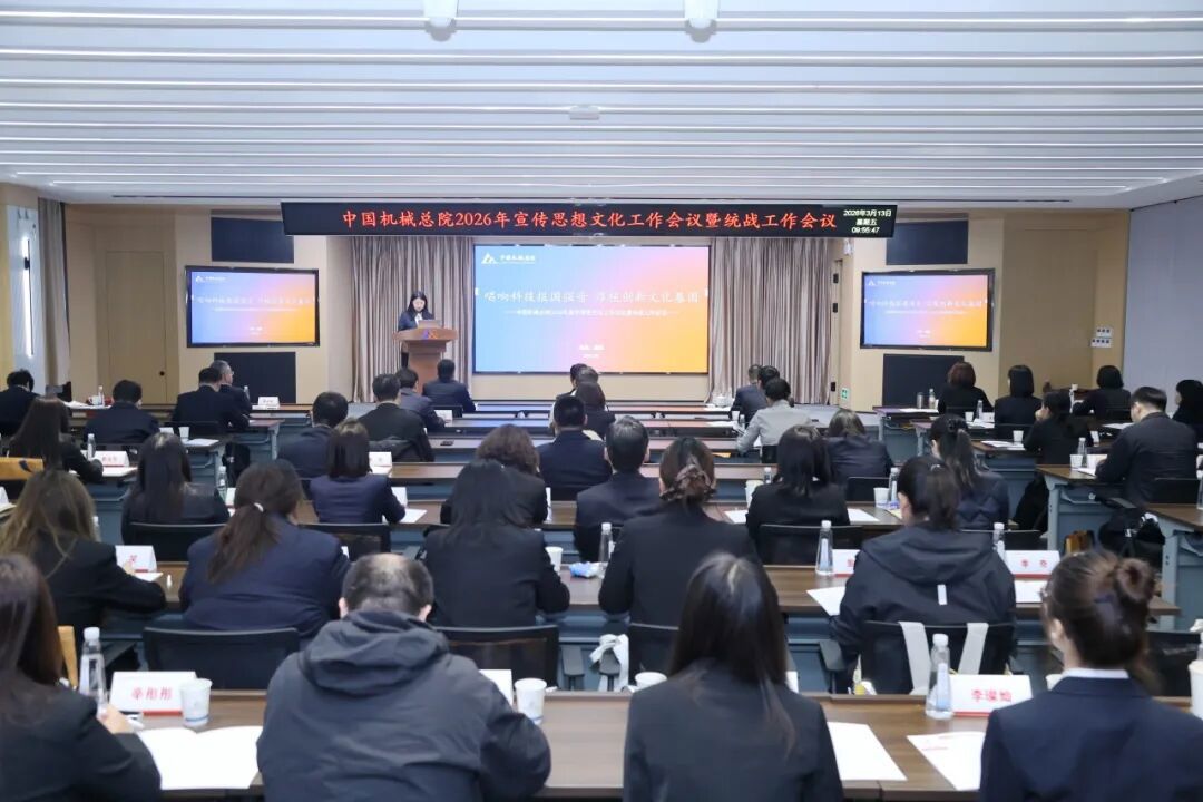 3月13日,中国机械总院召开宣传思想文化工作会议暨统战工作会议,深入学习贯彻习近平文化思想,贯彻落实全国宣传部长会议、全国统战部长会议及中央企业宣传思想文化工作会议、中央企业统战工作会议精神,总结工作、交流经验、表彰先进、分析形势,研究部署2026年工作。集团党委副书记、董事李玉鑫出席会议并讲话,集团党群工作部(党委宣传部)副部长张晓惠主持会议。