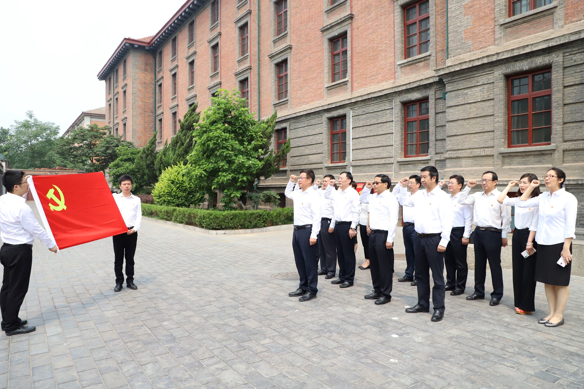 在北大红楼前,王德成书记带领大家面向党旗,举起右拳,重温入党誓词。回荡在北大红楼广场铿锵有力的誓言,代表着机械总院集团党委坚定的政治信念和强烈的使命担当。更是提醒我们,无论何时都始终不能忘了我们的初心和使命,坚持以习近平新时代中国特色社会主义思想为指导,用实际行动诠释机械总院集团人的使命担当。