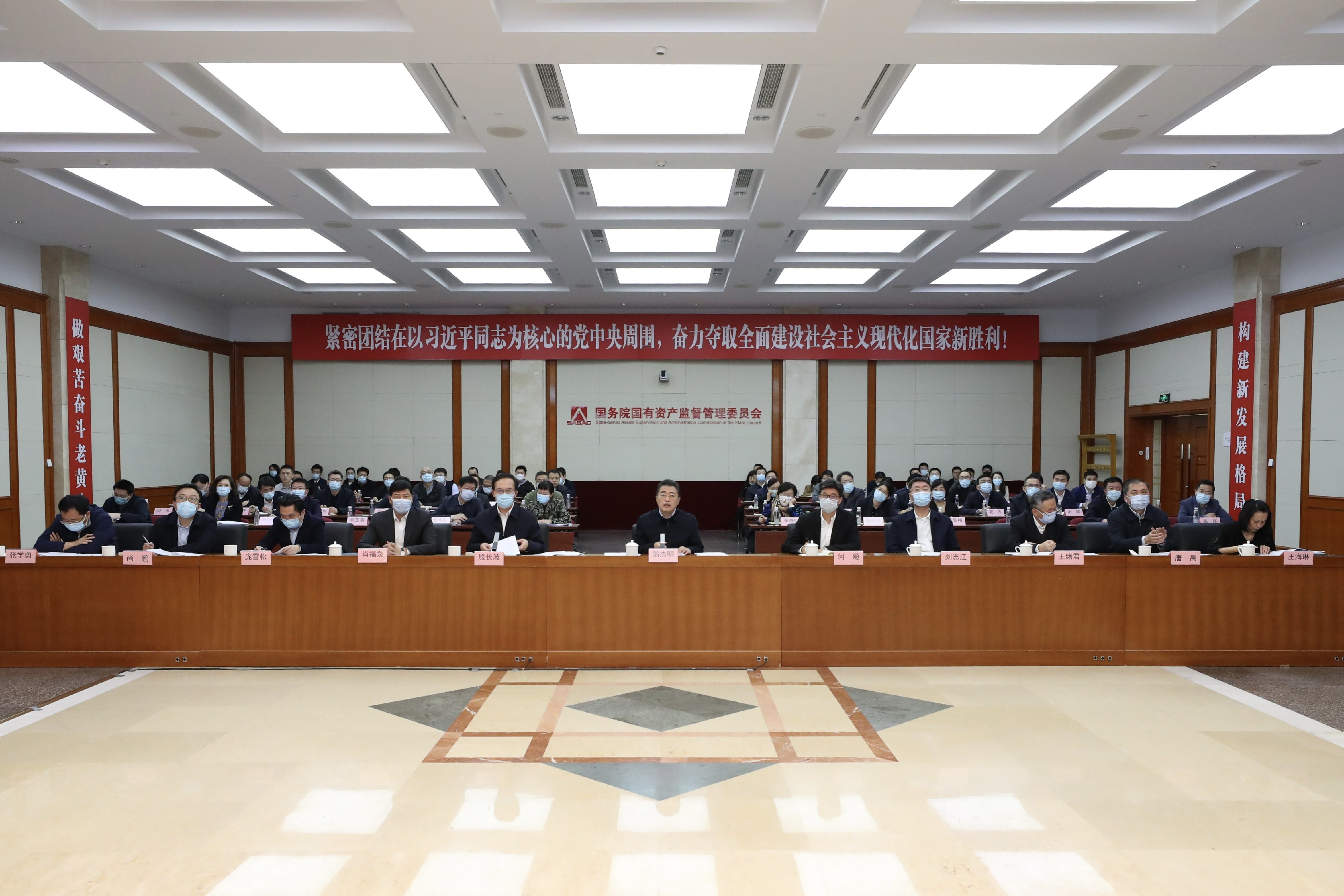国家能源集团、中国联通有关同志作了交流发言。国资委办公厅、规划局、财管运行局、改革局、监督追责局等5个厅局作了工作汇报。国资委各厅局、有关直属单位负责同志在主会场参会,各中央企业、地方国资委有关负责同志及相关人员在分会场参会。