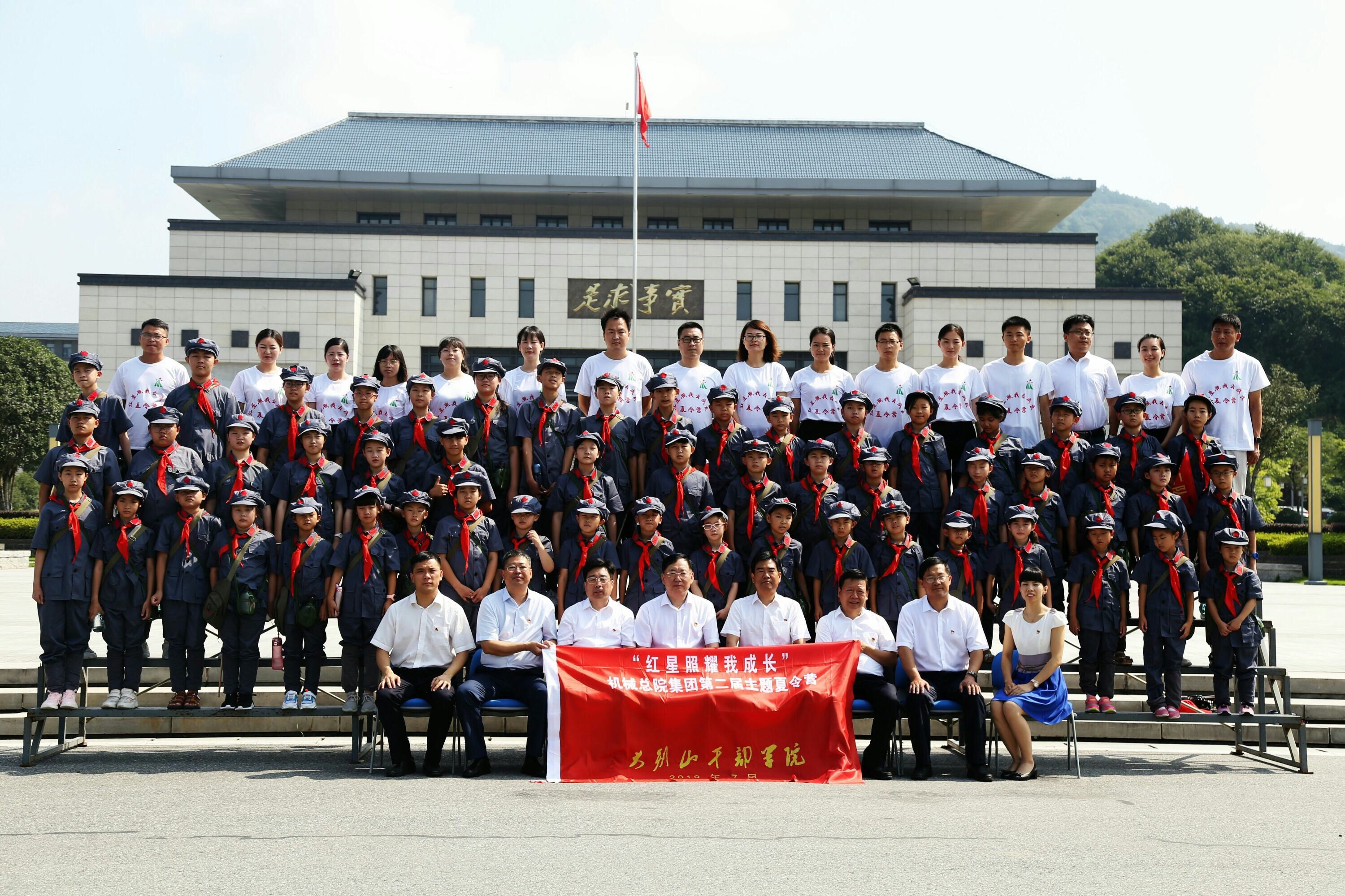 7月15日上午,机械总院集团第二届“红星照耀我成长”主题红色夏令营暨党性教育基地揭牌仪式在河南新县大别山干部学院隆重举行。集团党委副书记、董事王西峰,工会主席、党群工作部部长杨玉亭,新县县委书记吕旅,新县县委副书记尹建平,大别山干部学院党委副书记、常务副院长林志成等领导出席此次开营仪式。集团优秀员工子女27人和新县13名学生共40人参加红色夏令营活动。